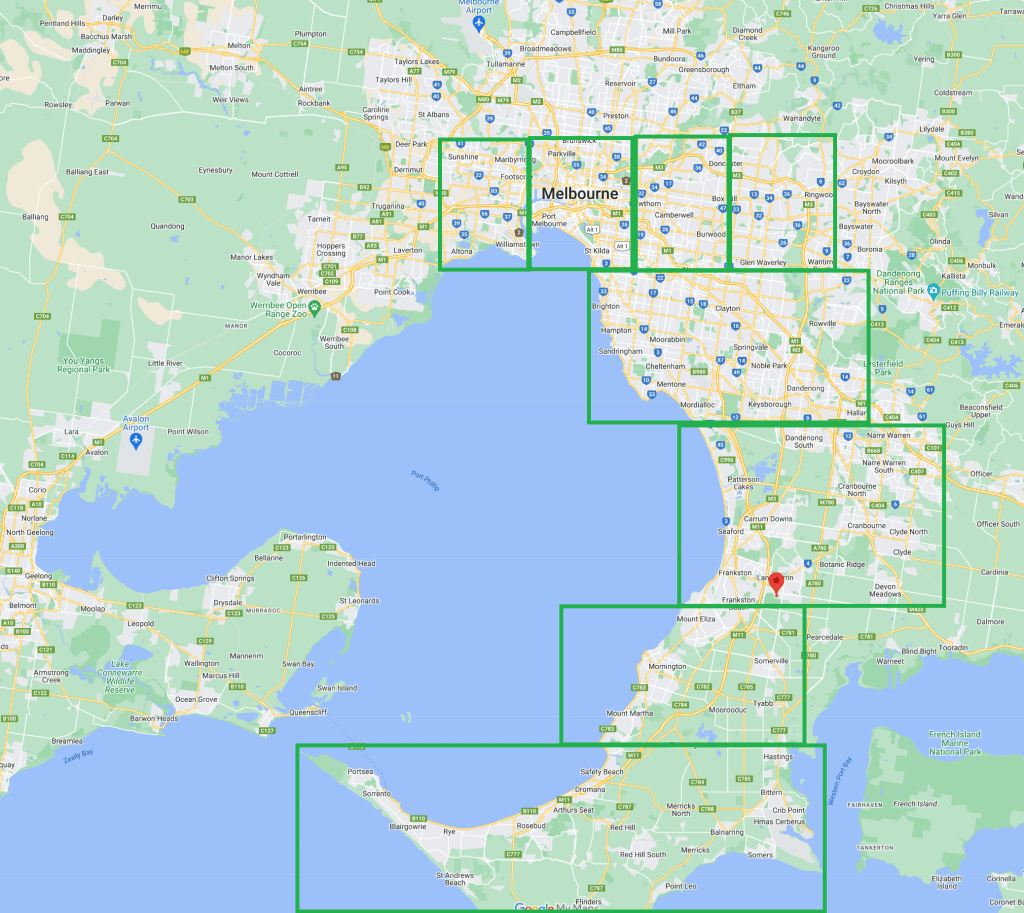 We cover North Melbourne, Melbourne, Inner East, Outer East, South East, South & Mornington Peninsula down as far as Port Sea. Contact us today to confirm if we cover your area.